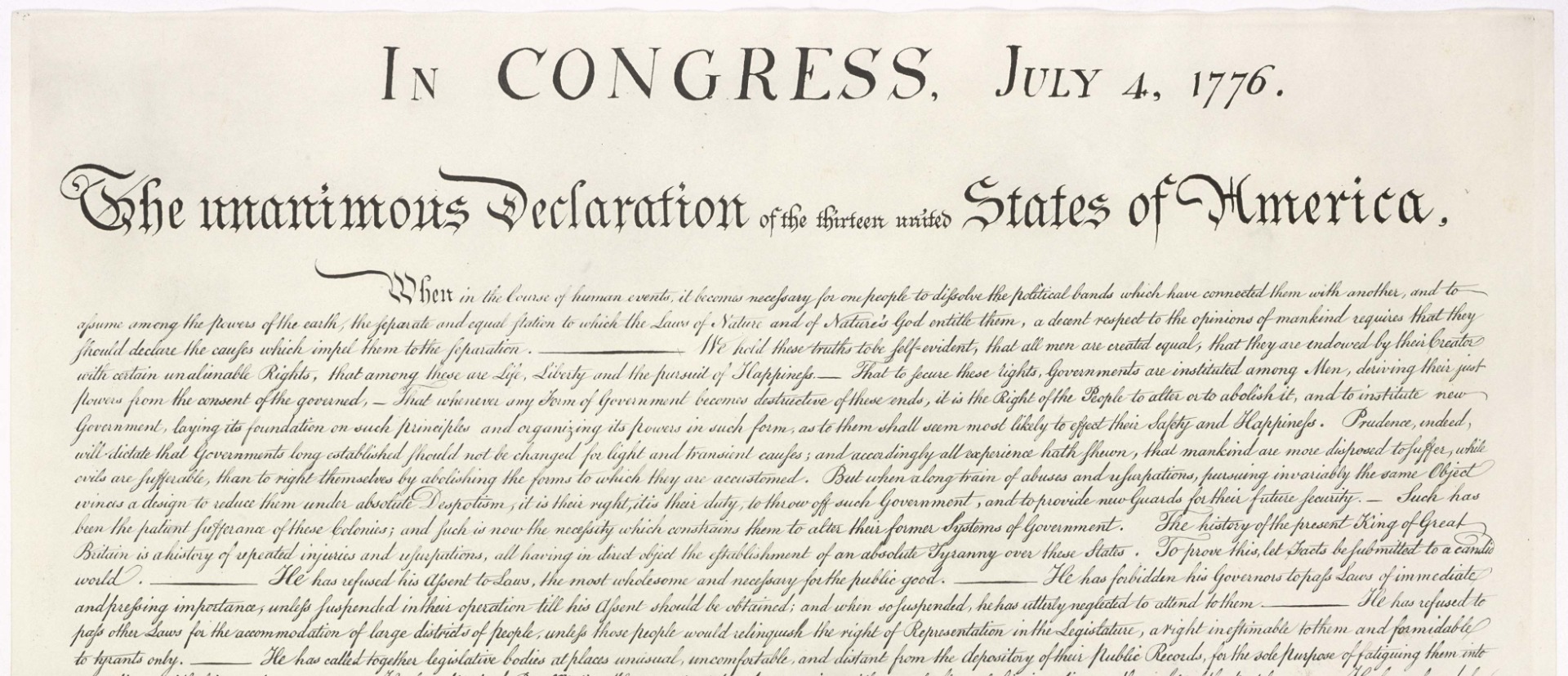 "Consideramos estas verdades como auto evidentes, que todos os homens são criados iguais, que são dotados pelo Criador de certos direitos inalienáveis, que entre estes são vida, liberdade e busca da felicidade."